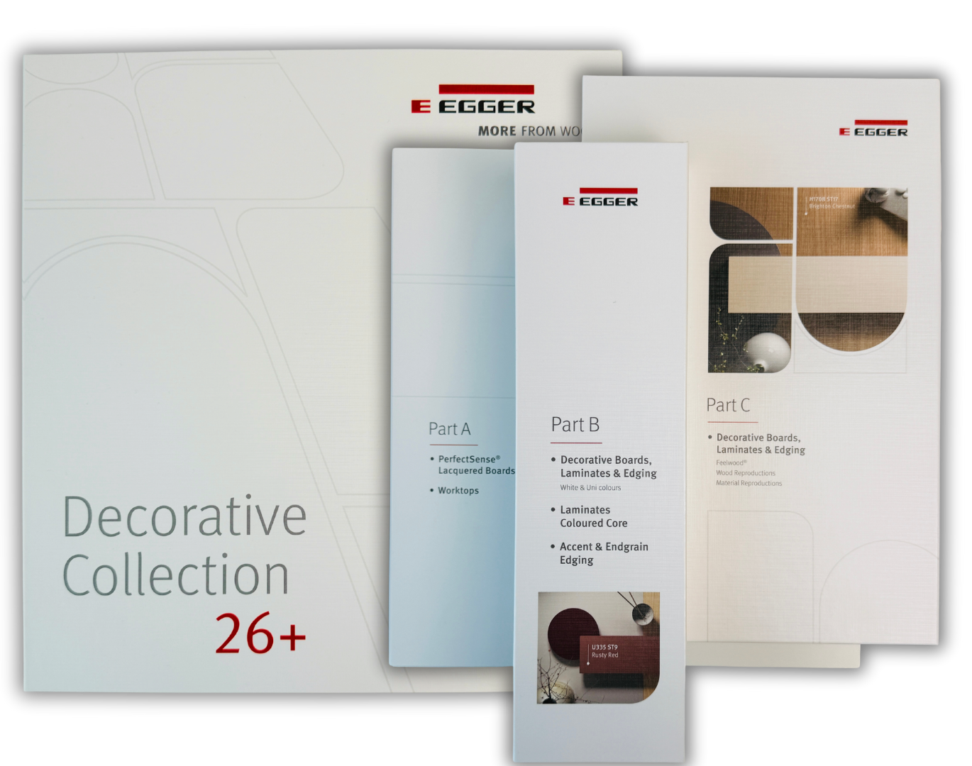 EGGER pavyzdžių katalogas „Dekoratyvinė kolekcija 26+“ – tai profesionalus fizinis dekorų katalogas, skirtas interjero dizaineriams, architektams, baldų gamintojams ir visiems, kurie profesionaliai dirba su plokštinėmis medžiagomis baldams ir interjerui. Fizinis katalogas leidžia tiksliai įvertinti spalvas, tekstūras ir paviršius bei patogiai parinkti medžiagas projektams.